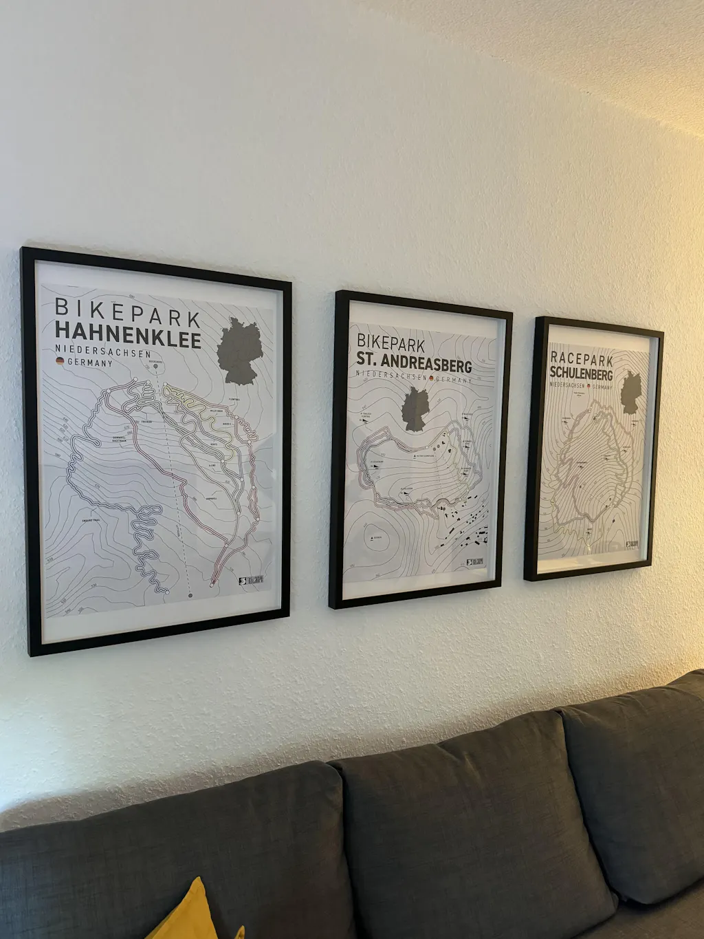 Es hat alles super geklappt und die Trailmaps waren schnell bei mir. Vier hängen im Wohnzimmer und eine hängt auf Arbeit und versüßt mir damit jeden Arbeitstag. Macht weiter so und gern auch mehr (zB Bikepark Bodetal 🙃 ).